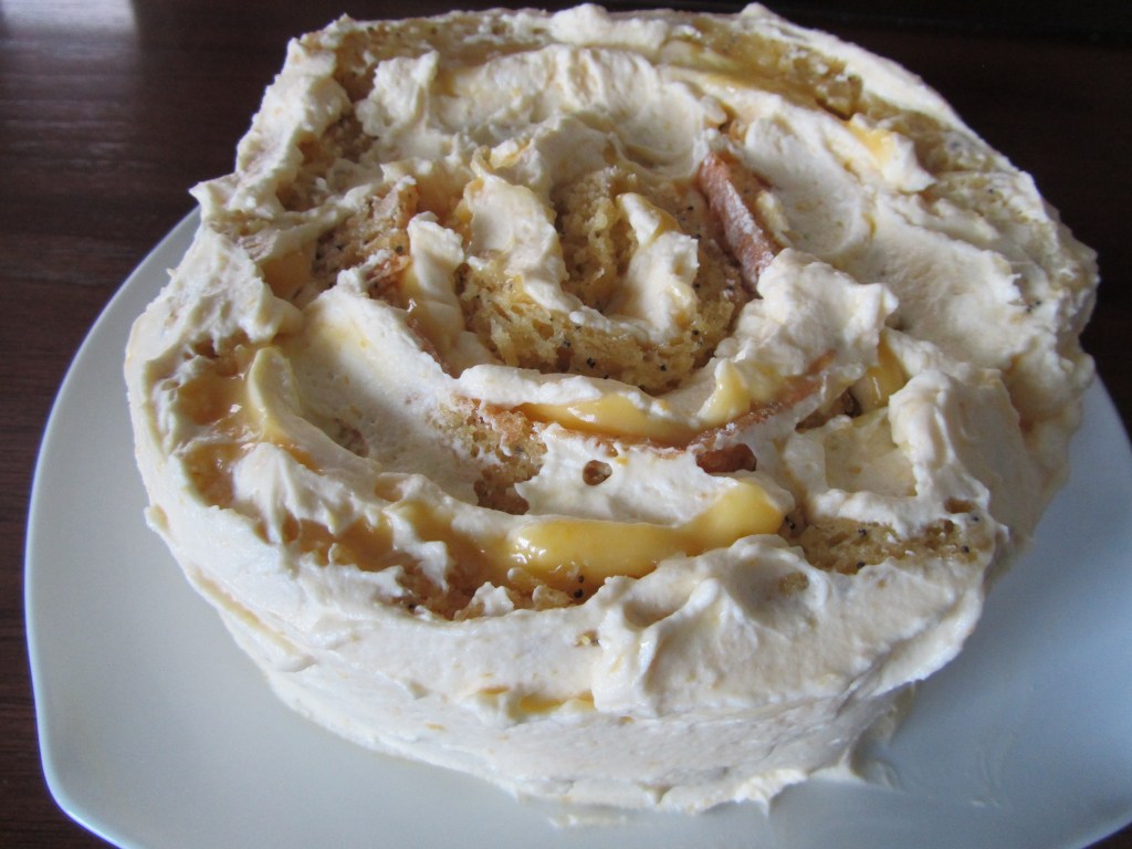 - Spread more filling on the outside of the cake to give the appearance of a frosted cake.