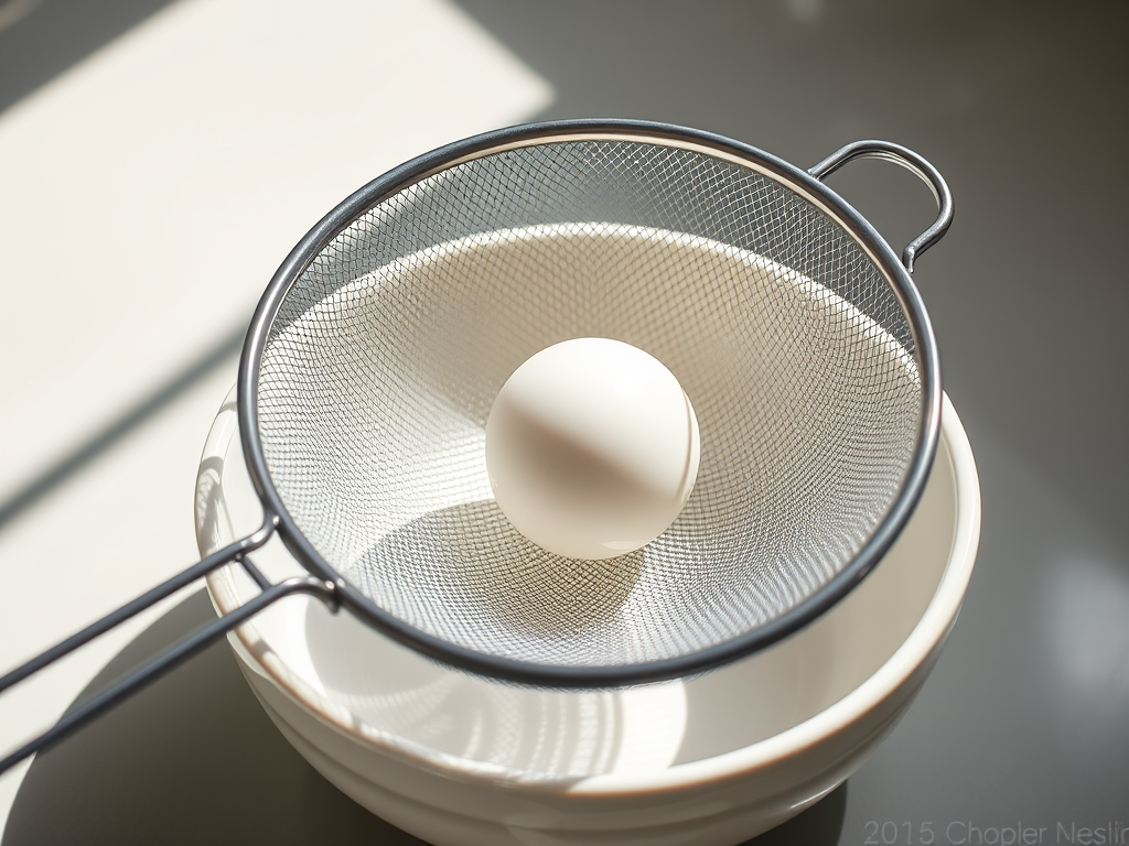 The use of this tool was first recommended in The Curious Cook by Harold McGee, published in 1992. British chef Heston Blumenthal has also popularized it. It involves cracking the eggs into a fine-mesh strainer and allowing the loose, watery whites to drain off. You are left with the thicker, firmer egg whites, which help you achieve that great poached egg shape.