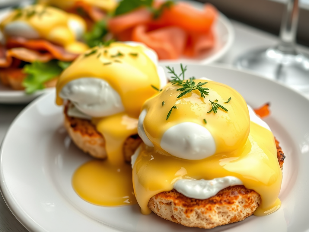 Now that you have your perfect poached eggs and your delicious hollandaise sauce, it is time to build your Eggs Benedict.