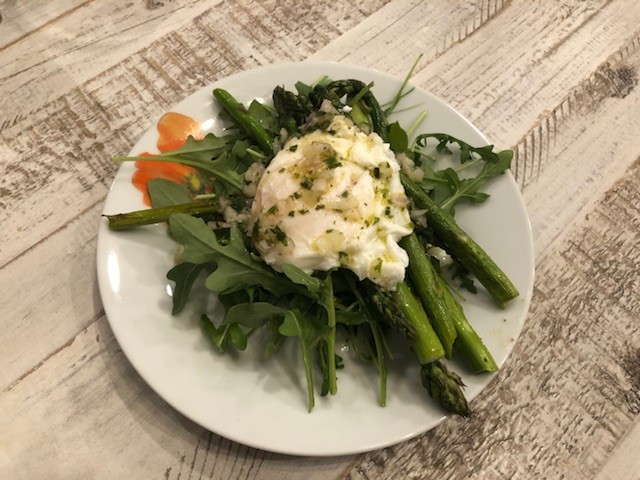 Roasted Asparagus & Arugula Salad with Poached Egg
