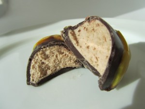 I was attempting to make a chocolate covered Easter egg filled with a light and fluffy center. I was using a recipe from Callebaut that had you mix some of their Gold chocolate (one of their specialty white chocolates containing caramelized sugar & milk) into the marshmallow mixture. I did not have that particular ingredient and so, used their milk chocolate. I tempered some chocolate to use in my Easter egg molds and filled them with this mixture. When I bit into them, I remembered how much I love homemade marshmallows. They reminded me of those marshmallow Easter eggs that you can buy but so much better.