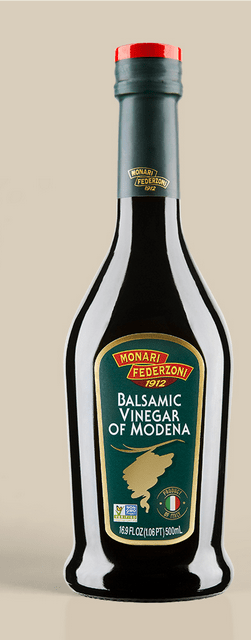 Traditional balsamicvinegar is made only in the provinces of Modena and Reggio Emilia, Italy. It is made only from grape must, which is freshly crushed grapes (including the skin, seeds, and stems) from particular grape varietals. This mixture is cooked down to a syrup and aged in wooden barrels for a minimum of 12 years.